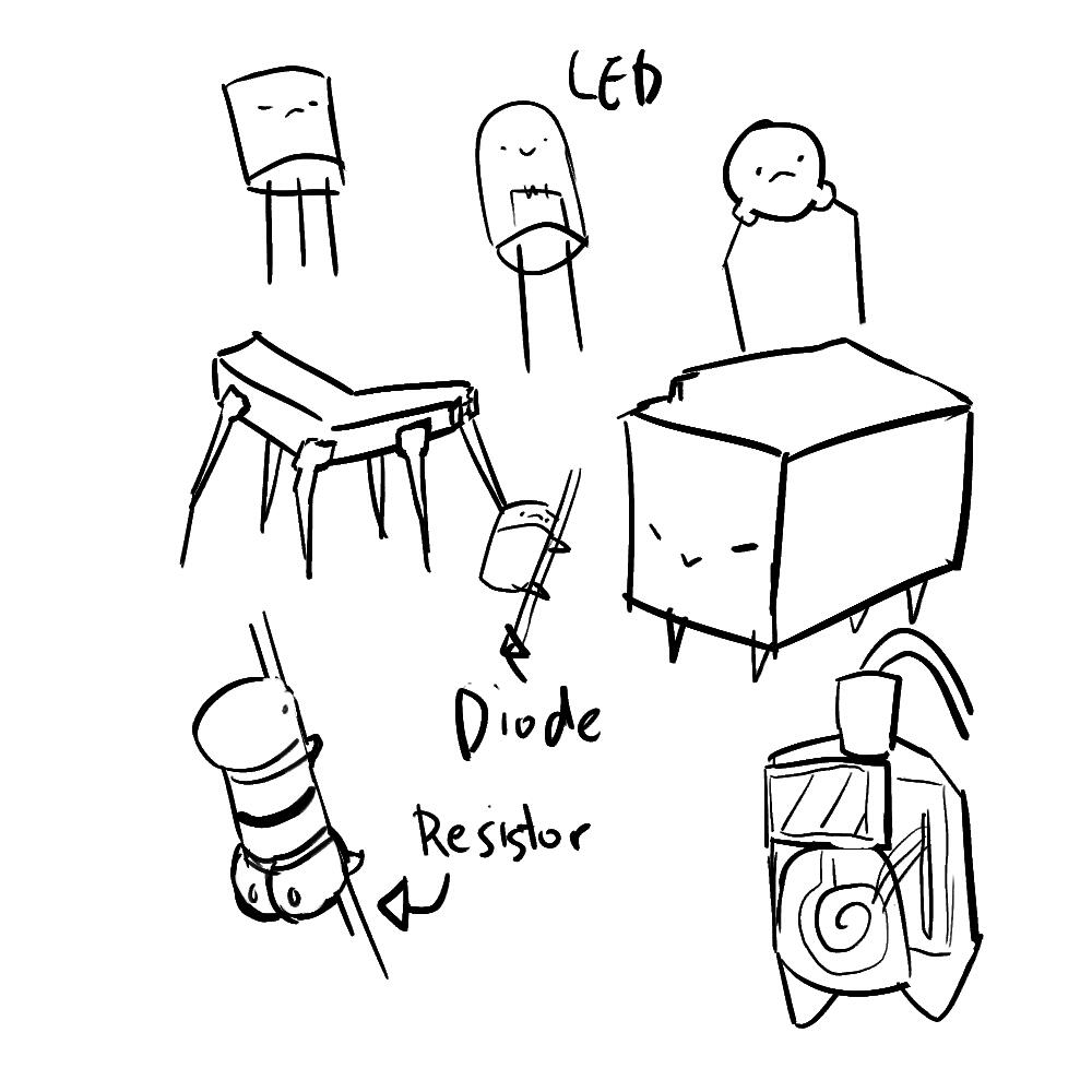 While I was in the Post Production class, I was tasked with researching, designing, and developing a product. My idea was that I'd like it to be a cute item on people's office desk near the computer. I took inspiration from computer components, for example, chips and circuit boards.My first step was disembling an old tamagotchi, a childhood favorite tiny game device, to see what's inside. I then looked at each electronic component and make them into cute characters. The concept of this is that you're able to choose the character you'd like to chat with. Then, I used an arduino board to make it so that I could display it on a screen and modify it as needed.