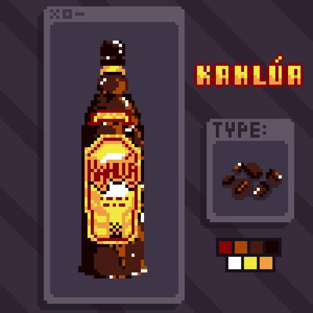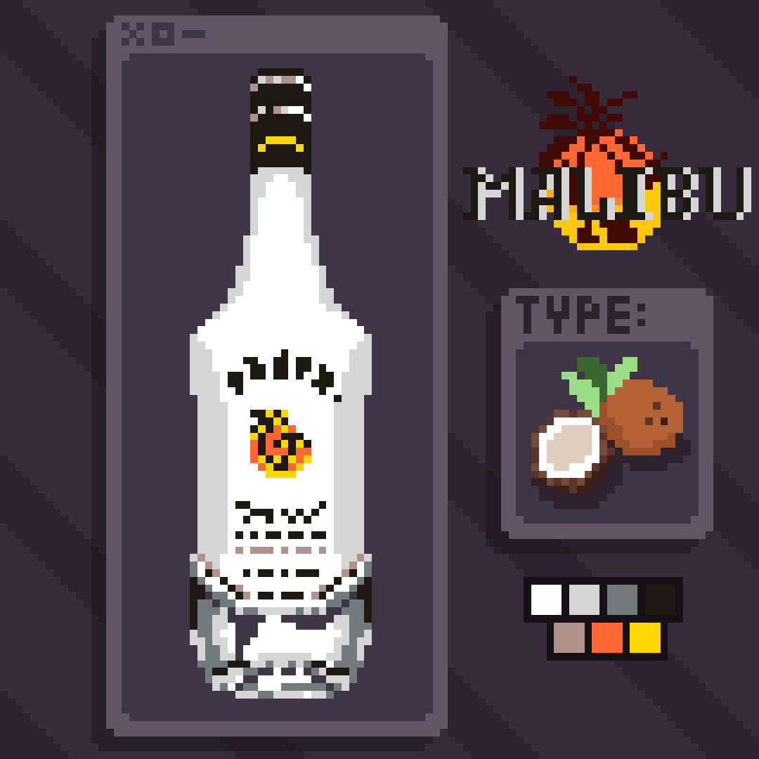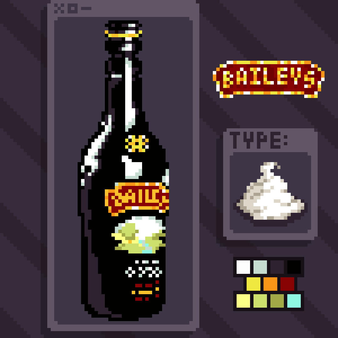 I got inspired by items in video games, plus I had a time off from university and a bunch of alcohol bottles lying around in my room; so I came up with some pixel illustrations of alcohol bottles I like.As you can already notice: I love making pixel art, and I love mixing and drinking alcohols. Two things combined, and this is my little passion project I made to post on Instagram.